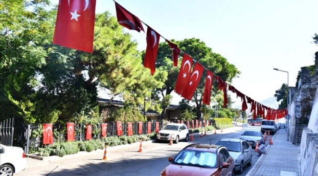 İzmir Büyükşehir Belediyesi tarafından Cumhuriyet Bayramı’nın 100’üncü yıl dönümü kutlamaları için hummalı bir çalışma yürütülüyor. Kentin cadde ve sokaklarında 35 bin metrekarelik alan bayraklarla kaplandı. 85 bin bayrakla birlikte İzmir gelincik tarlasına döndü.