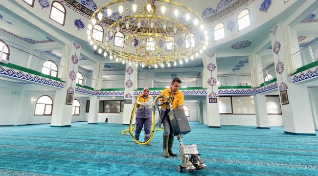 Aliağa Belediyesi, Ramazan ayının gelmesiyle birlikte ibadethanelerdeki temizlik çalışmalarına hız verdi.