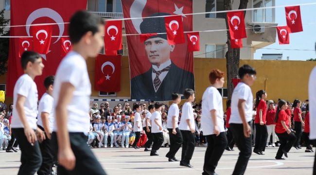 Aliağa’da ‘23 Nisan Ulusal Egemenlik ve Çocuk Bayramı’ kutlamaları sabah saatlerinde Aliağa Kaymakamlığı tarafından Cumhuriyet Meydanı’nda organize edilen Atatürk Anıtına çelenk sunma töreniyle başladı. Aliağa İlçe Milli Eğitim Müdürü Dr. Erdoğan Akyüz, Atatürk Anıtı’na çelenk sunumunu yaptı. Cumhuriyet Meydanı’ndaki öğrenci grupları ile vatandaşlar bando eşliğinde öğrenci gösterilerinin yapılacağı Atatürk İlkokulu’na kortej halinde yürüdü. Atatürk İlkokulu’nda gerçekleştirilen öğrenci gösterileri vatandaşlardan büyük alkış toplarken Aliağa’da okullar arası yapılan resim ve şiir yarışmasında dereceye giren öğrencilere de ödülleri takdim edildi. Katılımcılar program sonrası, öğrenciler tarafından hazırlanan ‘23 Nisan’da Çocuk Olmak’ konulu resim sergisini gezdi.
