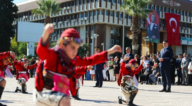 Aliağa Kaymakamlığı tarafından Cumhuriyet Meydanı’nda organize edilen program Aliağa Kaymakamı Zekeriya Güney, Garnizon Komutanı Hava Kurmay Albay Birol Balcı ve Aliağa Belediye Başkanı Serkan Acar’ın Atatürk Anıtına çelenk sunumu ile başladı. Saygı duruşu ve İstiklal Marşı’nın okunmasının ardından günün anlam ve önemine ilişkin konuşmayı PETKİM İlkokulu Müdürü Samet Arıcıoğlu yaptı.