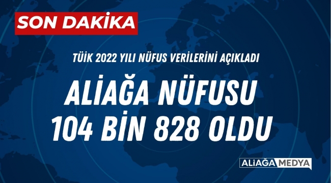 Türkiye İstatistik Kurumu (TÜİK) yarafından açıklanan Adrese Dayalı Nüfus Kayıt Sistemi Sonuçlarına göre Aliağa'nın nüfusu 104 bin 828'e yükseldi. Aliağa'nın 2021 yılı sonundaki nüfusu 103.364 olarak açıklanmıştı. Buna göre son 1 yılda Aliağa nüfusunda 1.464 kişi artış yaşandı.