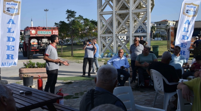 İzmir’in Aliağa ilçesinde amatör balıkçıklara Temel Yangın Eğitimi bilgilerinin verilmesin ardından yangın söndürme tatbikatı yapıldı.