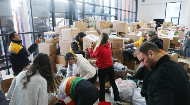 şekilde paketlendikten sonra tırlara yüklendi. Yardım tırları, Aliağa Kaymakamı Zekeriya