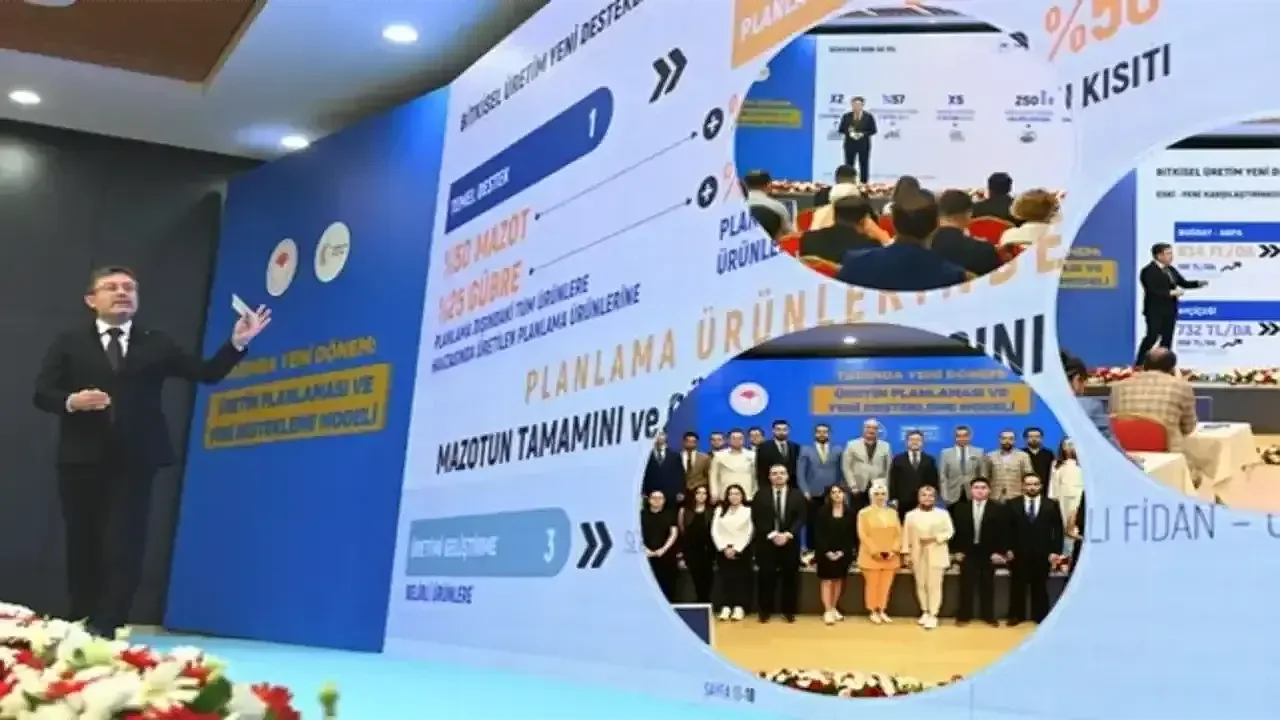 Tarım ve Orman Bakanı İbrahim Yumaklı, bitkisel üretim planlamasına ilişkin "Tarımda Yeni Dönem: Üretim Planlaması ve Yeni Destekleme Modeli" konulu basın toplantısı düzenledi."Tarımda Yeni Dönem" konulu basın toplantısında konuşan tarım ve orman bakanı İbrahim Yumaklı, son dönemde iklim değişikliği, nüfus artışları, doğal afetler, göç, gıda milliyetçiliği, jeopolitik riskler ve daha birçok konunun tarımsal üretimi riskli hale getirdiğini kaydetti. Bu etkilere toprak ve suyun azalması ile kirlenmesinin eklenmesiyle ne kadar büyük bir riskle karşı karşıya kalındığını gördüklerine işaret eden Bakan Yumaklı, "Bakanlık olarak bu risklere; sürdürülebilir, verimli, kaliteli, kayıtlı ve yatırım yapılan bir sektörle üretim gücümüzle cevap vermiş olacağız." diye konuştu.Dünyada 4,4 trilyon dolarlık tarımsal hasılanın bulunduğu bilgisini paylaşan Yumaklı, Türkiye'nin 68,5 milyar dolarla Avrupa'da birinci sırada, dünyada da ilk 10 içerisinde yer alan bir tarımsal üretim hasılasına sahip olduğunu bildirdi."BİTKİSEL ÜRETİM PLANLAMASINDA SUYU MERKEZE KOYDUK"Bakan Yumaklı, ülkenin su stresi altında olan bir ülke olduğunun altını çizdi. Kişi başına düşen bin 313 metreküplük bir potansiyelle su stresi altına olan bir ülke olduklarını kaydeden Bakan Yumaklı, "Eğer hiçbir aksiyon almazsak, 2030 yılında 1000 metreküpün altına düşme riskimiz var ve bu bizim su fakiri bir ülke kategorisine girmemizi gerektirecek bir sonucu doğuracak. Dünyanın tarımsal üretimde önemli ülkeleri iklim değişikliği, gıda güvenliği, tarladan sofraya kadar stratejiler, sürdürülebilirlik, etkin toprak, etkin su yönetimi ve geliştirilmiş çiftlik uygulamaları dahil olmak üzere birçok konuda yeni normal dediğimiz etkenlere cevap vermeye çalışıyor." diye konuştu.Bitkisel üretim planlamasına çalışırken suyu merkeze koyduklarına işaret eden Yumaklı, tarımsal üretim planlamasının bundaki sonraki dönemlerinin kendileri için en önemli girdisinin su olduğunun altını çizdi."TARIMSAL DESTEKLERİ SADELEŞTİRDİK"Bakan Yumaklı, yeni uygulamalara önceki destekleme modeliyle cevap vermelerinin mümkün olmadığına değinerek, "Verilen tarımsal kredileri tamamen üretim planlamasına odakladık. Hibe programları, sözleşmeli üretim, kayıtlılık, tarım sayımı, işlenmeyen arazilerin tarımsal üretime kazandırılması gibi konuları araçlar olarak üretim planlamasının en önemli başlıkları olarak ortaya koyduk ve uyguladık." diye konuştu.Önceki destekleme modelinde alt başlıklarıyla birlikte 165 kalemde destekleme verdiklerini anımsatan Yumaklı, 2022'de 129 milyon ton, 2023'te de 137 milyon tonluk üretimde tarımsal desteklerin yönlendirici etkisinin olduğunu aktardı. Bakan Yumaklı, tarımsal desteklerin sadeleştirilmesi konusunda herkesin mutabık kaldığını ifade ederek, "Bunu sadece bitkisel üretimi planlarken yapmadık. Hayvansal üretim başlığı ile su ürünleri başlığını da planlarken oradaki destekleri sadeleştirmiş olduk." dedi.Ülkede yaklaşık 24 milyon hektar ekilebilir tarımsal arazi bulunduğuna dikkati çeken Yumaklı, bu arazilerin 3,8 milyon hektarının çok yıllıklı bitki denilen dikili meyvelerden ve diğer bitkilerden oluşan kısım için kullanıldığı bilgisini paylaştı. Bakan Yumaklı, 20,2 milyon hektarın da geriye kalan ürünlerin üretilmesi için kullanıldığına işaret ederek, şunları kaydetti:"Üretim planlamasına başlarken, Türkiye'de yaklaşık 206 başlıkta geniş bir yelpazede üretim yapıldığını göz önüne alarak stratejik ürünlerden başlamayı hedefledik. 13 stratejik ürün, hububat, baklagil, yağlı tohumlar ve diğer dediğimiz patates ve soğan. Neden bu stratejik ürünleri seçtik? Çünkü bu ürünler ülkemizdeki 20,2 milyon hektarın 15,6 milyon hektarında ekilen ürünler. Üretim planlamasının düğmesine bastığımızda, yaklaşık yüzde 77'si oranında ekilen ürünleri planlamaya almış olduk. Gıda arz güvenliğimiz için önemliydi, stratejik önemliydi, insan ve hayvan beslenmesi önemliydi ve sanayimizin ham madde temini önemliydi. Artı bir dediğimiz de yem bitkileri. 13 artı 1 ürünle 1 Eylül 2024 itibarıyla üretim planlamasına Türkiye'deki toprakların yüzde 77'sinde üretilen ürünleri planlama kapsamına almış olduk."Hububatta 2027 planlama dönemi sonuna kadar yüzde 13'lük bir artış öngördüklerini bildiren Yumaklı, 35 milyon tondan 39,5 milyon tona çıkılacağını belirtti. Baklagillerde de yüzde 17'lik bir artış planladıklarını anlatan Yumaklı, yağlı tohumlarda da yüzde 22'lik bir artışı sağlamış olacaklarına dikkati çekti.DESTEKLERDEKİ "İLK"LERDestekleri açıklarken bu planlama sürecinde birçok ilki de gerçekleştirdiklerine işaret eden Bakan Yumaklı, "Destekler ilk kez üretim döneminden önce açıklandı. 3 yıl boyunca geçerli olacak üretim destekleri yine bu süreçte açıklanmış oldu. Stratejik ürünlere ilave planlama desteği yine ilk kez bu modelde gerçekleştirilmiş olacak. Destek tutarlarının girdi maliyetleri baz alınarak belirlenmesi ve değişime göre güncellenmesi bu modelde söz konusu olacak. Su kısıtı olan bölgelerde kademeli üretime dahil olan ürünlere de ilave destek olacak. Kamu tarafından geliştirilen yerli ve milli tohumlara da ilave destek vermiş olacağız. Bitkisel üretim planlamasında yer alan üreticilerimiz, hangi havzada, hangi ürünü ekerse nasıl bir destek alacağını bugünden itibaren önümüzdeki 3 yıl boyunca biliyor oldu. İleriye doğru, üçer yıllık periyotlarda açıklamış olacağız." diye konuştu.