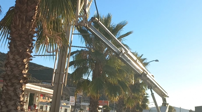 Yapılan çalışmalar kapsamında Bodrum’un ana arteri konumunda olan ve trafik yoğunluğunun yaşandığı Atatürk Caddesi’nde palmiye ağaçlarına budama işlemi yapıldı.