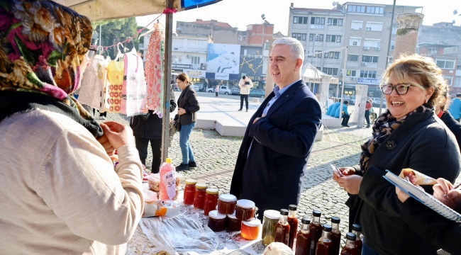 Bergama Belediyesi üreten kadınlar için Cumhuriyet Meydanı’nda yeni yıl pazarı düzenlendi. Kadının emeğini değerlendirmek, ekonomi içinde üreten hale getirmek için kurulan pazar, üreticilerimizin gücünü ve dayanışmanın önemini bir kez daha ortaya koydu. Kadın üreticilerin her zaman yanında olacağını ifade eden Bergama Belediye Başkanı Prof. Dr. Tanju ÇELİK, projenin geliştirerek devamının getirileceğini ifade etti.