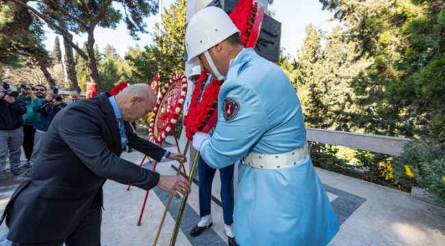 İzmir Büyükşehir Belediye Başkanı Tunç Soyer, 18 Mart Şehitleri Anma Günü ve Çanakkale Deniz Zaferi’nin yıl dönümü nedeniyle Kadifekale Şehitliği'nde düzenlenen anma törenine katıldı.
