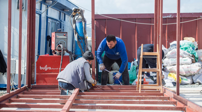 Hatay’da yol formeni olarak görev yapan, Fen İşleri Dairesi Başkanlığı bünyesindeki Metin Aydın “8 iş makinesi 10 kamyon ve 64 çalışma arkadaşımla beraber bir yandan enkaz kaldırma çalışmalarına destek veriyoruz, bir yandan içinde bulunduğumuz 23 dönümlük alan içerisinde 200 ailenin barınabileceği konteyner kentin yapım çalışmalarını devam ettiriyoruz. Altyapı çalışmalarına en kısa zamanda başlayacağız. Konteynerlerin üretimini de kendi ekiplerimizle yapıyoruz” dedi.