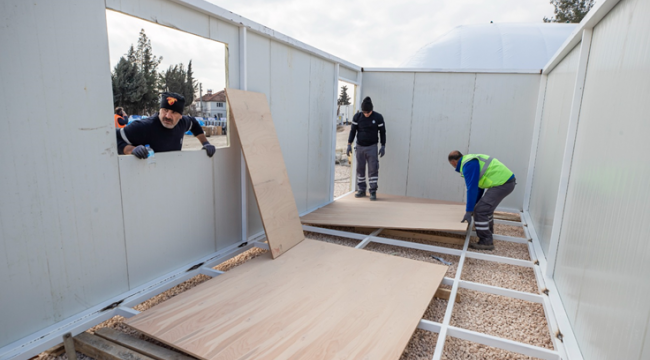 İzmir Büyükşehir Belediyesi, 11 büyükşehir belediyesi içinde genel afet koordinasyonunu İzmir'in üstlendiği Osmaniye’de de Mart ayı başına kadar 200 haneli konteyner kent kuracak.