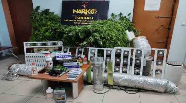 İzmir'in Torbalı ilçesinde iklimlendirme sistemi kurularak uyuşturucu imalathanesine çevrilen bir eve polis ekipleri tarafından operasyon gerçekleştirildi. Baskında yaklaşık 2 milyon Türk Lirası değerinde esrar ve kenevir ele geçirilirken olayla ilgili gözaltına alınan şüpheli, çıkarıldığı mahkemece tutuklandı.Torbalı Narkotik Grup Amirliği ekipleri, İngiltere'nin Manchester şehrinden getirilen ithal tohumlar ile dubleks bir evin üst katında uyuşturucu imal edildiği bilgisi üzerine harekete geçti. İlçeye bağlı Tepeköy Mahallesi'nde Y.İ.'ye ait eve operasyon gerçekleştiren ekiplerin yaptığı aramada, yaklaşık 2 milyon lira değerinde ışık sigarası olarak bilinen 644 gram esrar ve 82 kök kenevir ile 19 adet uyuşturucu hap, 1 hassas terazi ve 1 adet tabanca yakalandı.14 yıl hapis cezası ile aranıyormuşÖte yandan, ev sahibi Y.İ. polis ekiplerince gözaltına alınırken, şüphelinin 9 farklı suçtan 14 yıl hapis cezası ile arandığı ortaya çıktı. Şüpheli, emniyetteki işlemlerin ardından sevk edildiği mahkemece tutuklanarak cezaevine gönderildi.