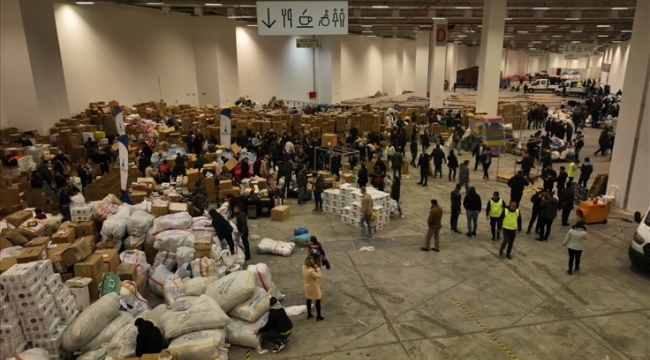 Deprem bölgesine ulaştırılmak üzere 11 tır, iki uçak ve bir gemiyle toplamda 42 bin 830 battaniye, 2 bin 532 elektrikli ısıtıcı, 250 kömür sobası, 2 bin paket bebek bezi, 2 bin 480 yorgan, 3 bin yastık, 128 paket bebek maması, 3 bin 960 paket hijyenik ped, 64 bin 61 giyim malzemesi, 810 çift çizme, 400 yağmurluk, 3 bin 11 uyku tulumu, 2 bin 360 uyku matı, 6 bin 843 paket hijyen paketi, bin 286 gıda kolisi, 51 bin 956 su, 200 çadır, 500 çadır zemin malzemesi, 290 kamp sandalyesi, 24 koli anne bebek kolisi, 10 bebek yatağı, 9 bin 650 cerrahi maske, 10 koli ilk yardım malzemesi, 10 ton yakacak, 500 hasta bezi, 200 powerbank, 144 adet 5 litre su, bin 200 adet 1,5 litre su, 514 yatak süngeri gönderildi.
