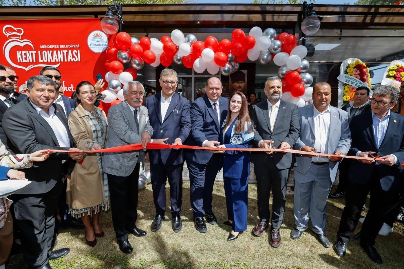 İzmir Büyükşehir Belediye Başkanı Dr. Cemil Tugay, yurttaşlara sağlıklı, kaliteli ve uygun fiyatta yemek hizmeti sunmak için Menderes Belediyesi tarafından Ayyıldız Parkı içerisinde hizmete alınan Kent Lokantası’nın açılışına katıldı. Menderes Belediye Başkanı İlkay Çiçek’in ev sahipliğinde yapılan açılış törenine CHP İzmir Milletvekili Yüksel Taşkın, CHP İzmir İl Başkanı Şenol Aslanoğlu, ilçe belediye başkanları, muhtarlar ve yurttaşlar da katıldı. Belediye şirketi Cumaovası AŞ tarafından işletilen ve ilk etapta günlük bin kişilik yemeğin çıkacağı lokantada, 3 çeşit yemek, ekmek ve su 90 TL’den halka sunuluyor. Kent Lokantası’nın ilk günü menüsünde ise mercimek çorbası, tas kebabı, pirinç pilavı ve cacık yer aldı. Menüde her gün farklı yemekler yer alacak.