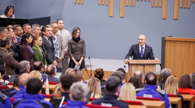 İzmir Büyükşehir Belediye Başkanı Tunç Soyer, yılın son iş gününde belediye personelinin yeni yılını kutladı. Kültürpark 4 No’lu Hol’deki Meclis Salonu’nda belediye çalışanlarıyla buluşan Başkan Soyer, görevde 5 yılı geride bırakmaya hazırlandığını anımsattı. Soyer, “Su gibi geçen bir 5 yıl. Ama emin olun ki o heyecandan hiç bir şey eksilmedi. Aynı heyecanı, aynı aşkı taşıyorum. Sizlerle beraber olmaktan büyük mutluluk ve gurur duyuyorum. İyi ki varsınız. İyi ki yanınızdayım. Dünyada iklim krizi, siyasi krizler, savaşlar var. Ekonomik kriz, hayat pahalılığı yaşanıyor. Bunların hepsi varken, bu salonda gördüğüm manzara insanın içine umut taşıyor. İnsanın içi ısıtıyor. Geleceğe dair umudu büyütüyor” dedi.