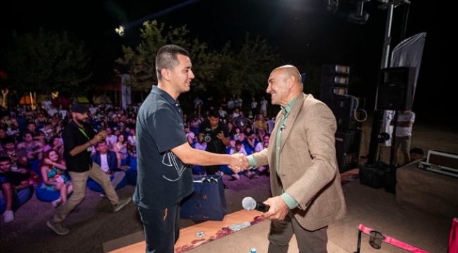 Alanda yoğun ilgiyle karşılanan Başkan Soyer, gençlerle hatıra fotoğrafı çektirdi. Kampın söyleşi bölümünde sahneye gelen Başkan Soyer, okul yıllarından, özel hayatına, hobilerinden günlük hayatına kadar pek çok soruyu yanıtladı.