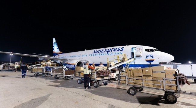 SunExpress'in Almanya'dan gelen yardımları taşıyan ilk kargo uçağı Antalya'ya ulaştı