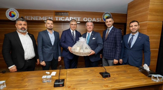 İzmir Büyükşehir Belediye Başkanı Dr. Cemil Tugay, Menemen Ticaret Odası'nı ziyaret etti. Menemen Ticaret Odası Başkanı İzzet Süsoy ve oda yönetiminin karşıladığı Tugay'a, CHP Menemen İlçe Başkanı Hüseyin Özbey eşlik etti. İzmir Büyükşehir Belediyesi olarak Menemen'e yaptıkları hizmetlere değinen Başkan Tugay, kent genelinde yaptıkları çalışmalardan da söz etti. Menemen'in nüfus açısından en hızlı büyüyen ilçelerden olduğunu, bu nedenle diğer ilçelere göre biraz daha fazla çözüm bekleyen konunun bulunduğunu belirten Tugay, “İzmir'in genelinde yapılacak çok iş var. Bizim kentin merkezine hizmet götürmek kadar, şehrin kırsal alanında da adaleti sağlayacak şekilde, oradaki sorunları gecikmeden yönetmek, düzeltmek için çalışma sorumluluğumuz var” dedi.
