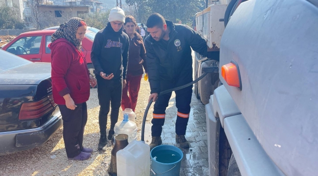 Belediye Başkanı Fatih Gürbüz yönetimindeki on beş belediye çalışanı, Hatay Defne’ye getirdikleri 1 kepçe, 1 tanker ve 1 jeneratörün yanı sıra çadır kurulması, su dağıtımı, moloz taşıma gibi işler gerçekleştiriyor.